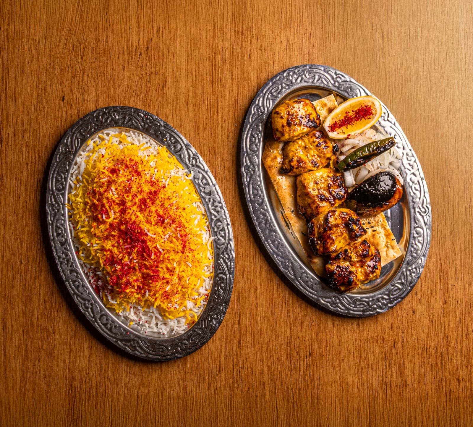 اربع قطع من اضلاع الضأن المشويه على الطريقة الفارسية